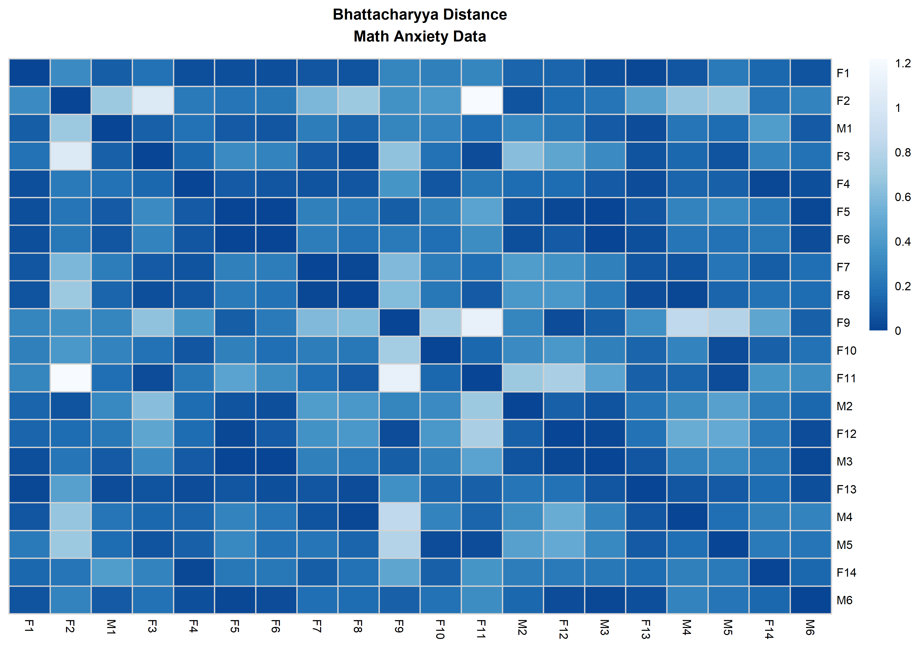 main = 'Bhattacharyya Distance\nMath Anxiety Data',