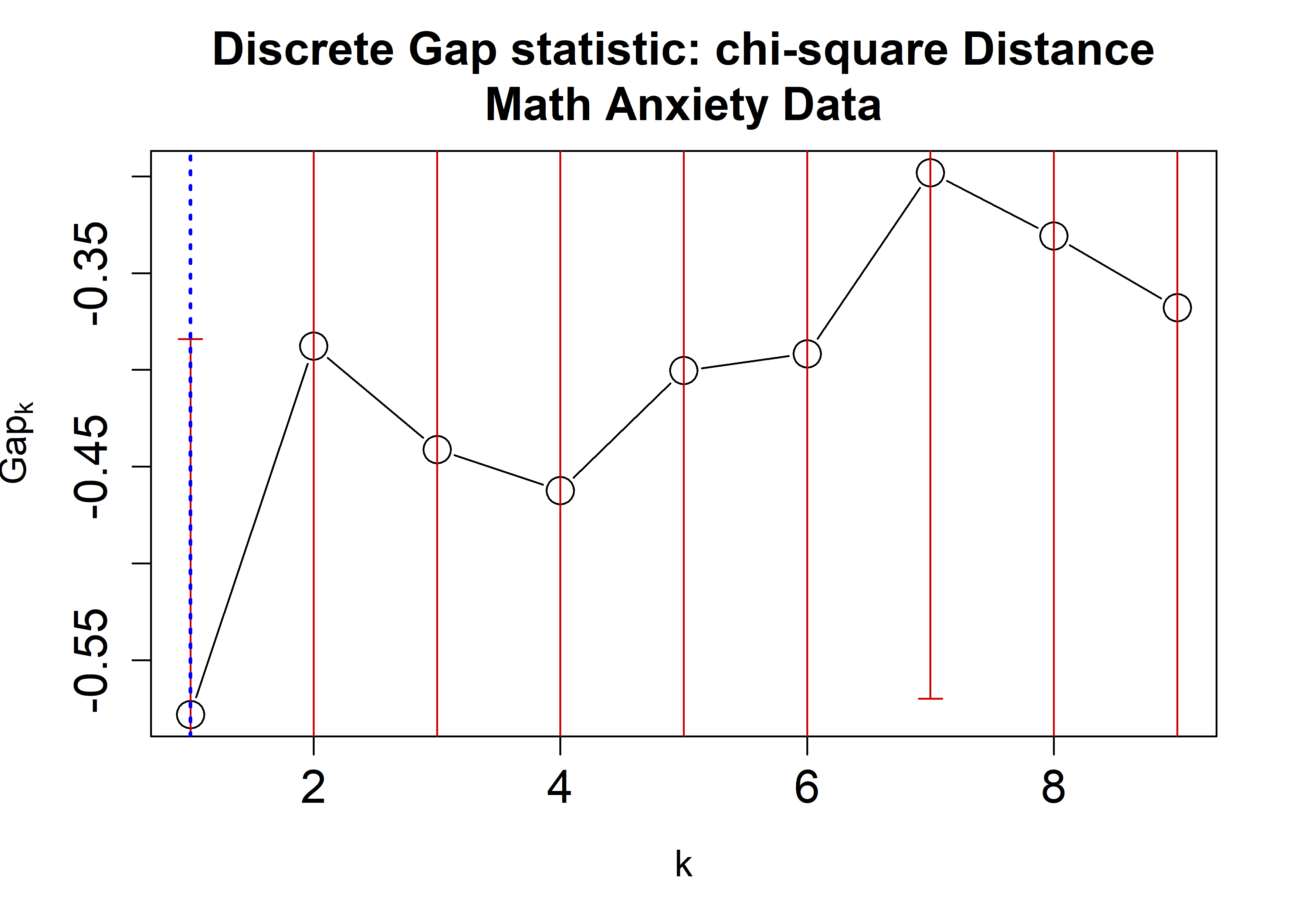 main = "Discrete Gap statistic: chi-square Distance\nMath Anxiety Data",