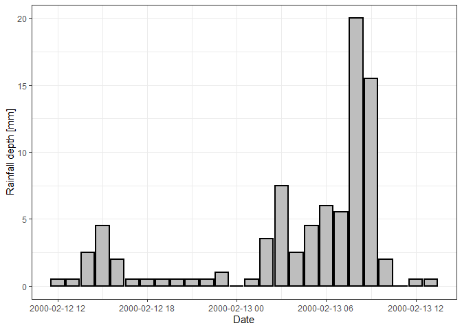 ggplot(Event13,aes(x=Date,y=Rainfall.depth)) +