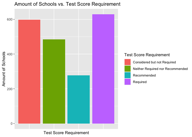 labs(title = "Amount of Schools vs. Test Score Requirement",