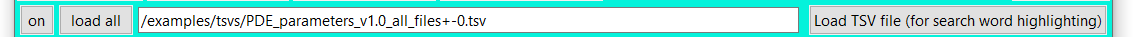 1. Load TSV file: Open the TSV file such as PDE_parameters_v1.0_all_files+-0.tsv in the folder examples/tsvs/ to highlight the search words in following way: █▶-[search word]-◄█.