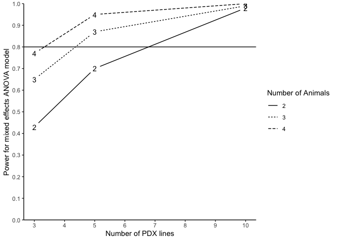 devtools::install_github("shanpengli/PDXpower")Below is a toy example how to conduct power analysis based on a