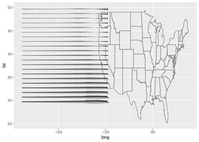 ggplot(seals, aes(x=long, y=lat, u=delta_long, v=delta_lat)) +