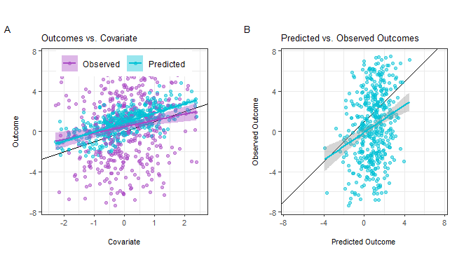 1. Understanding the relationship between predicted outcomes and their true, unobserved counterparts.