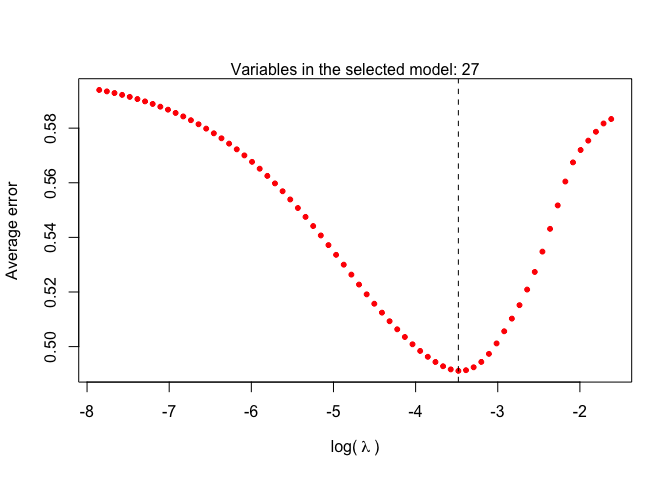 method = "dCV", k=10, R=20)Then, plot the result as follows: