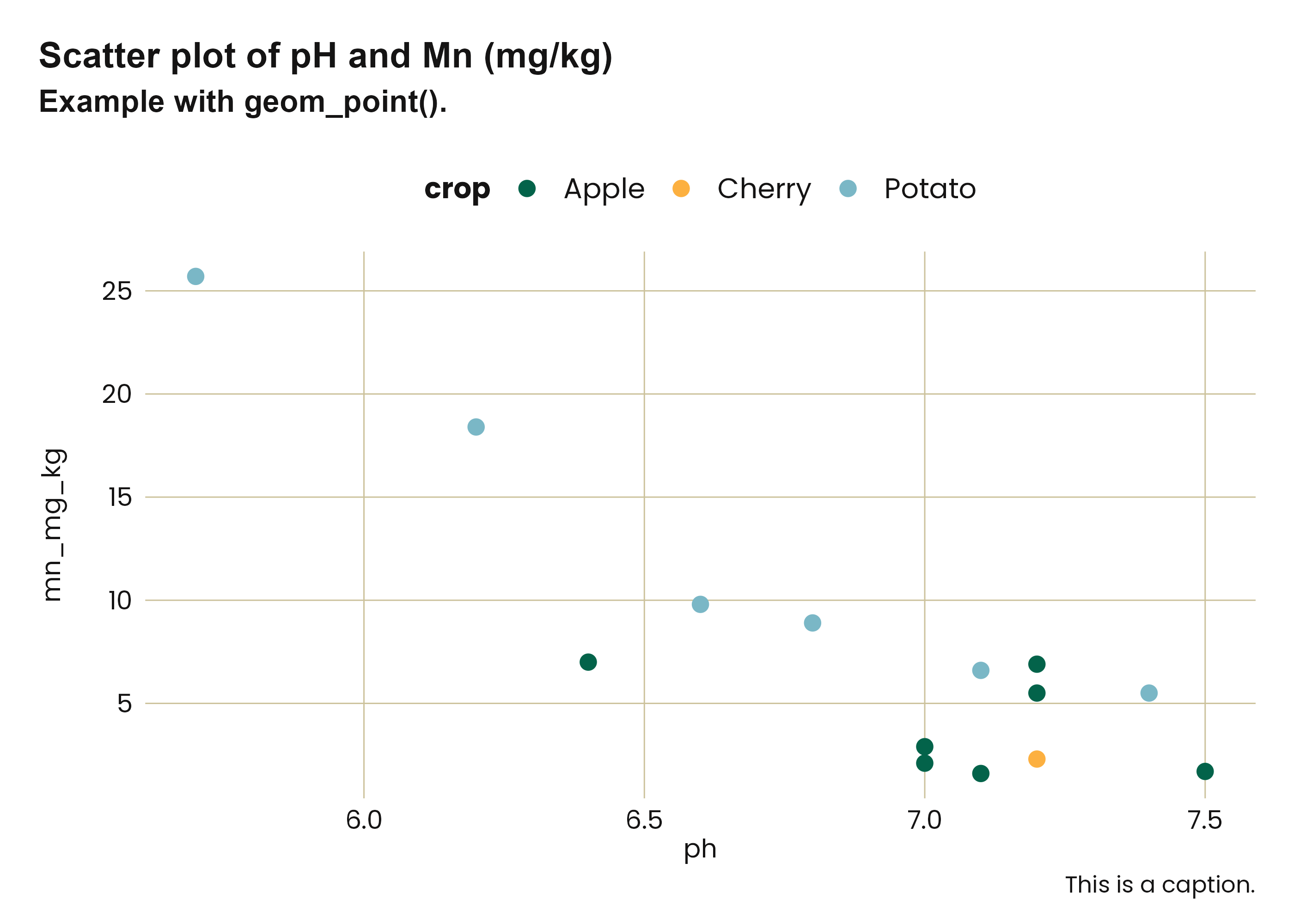 ggplot(aes(x = ph, y = mn_mg_kg, color = crop)) +