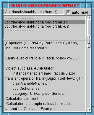 Clemson.) Select /opt/local/visual/tutorial/basic/calc.st from the file list, which is called the Names View. The File List should look like the following window.