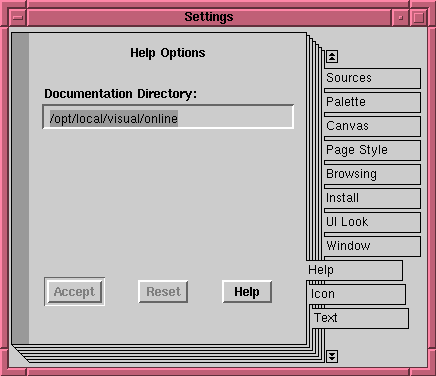 pages (not on the Help button for the Settings window). You should see the following window. Make sure that the path for the online documentation is correct. Click Accept after making any necessary changes.