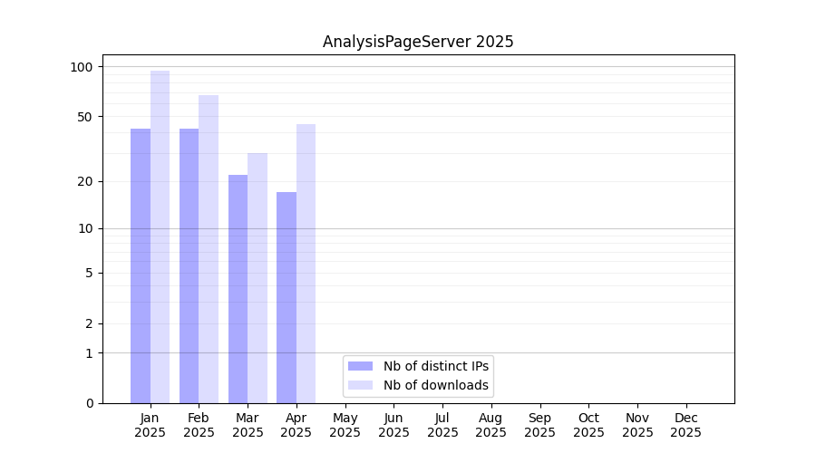 Number of downloads for software package AnalysisPageServer, year by year, from 2025 back to 2014 (years with no downloads are omitted):
