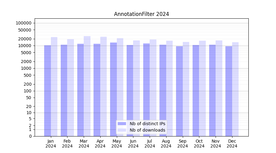 Number of downloads for software package AnnotationFilter, year by year, from 2025 back to 2014 (years with no downloads are omitted):