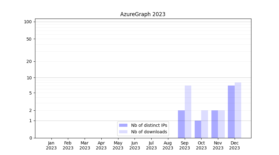 Number of downloads for software package AzureGraph, year by year, from 2025 back to 2014 (years with no downloads are omitted):