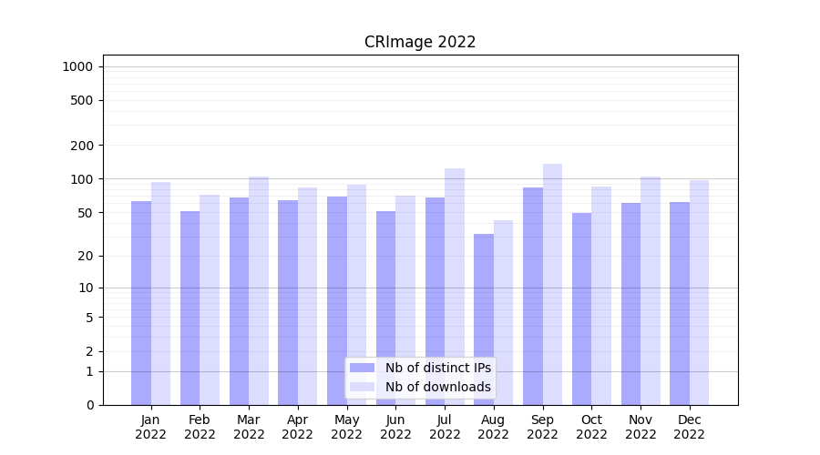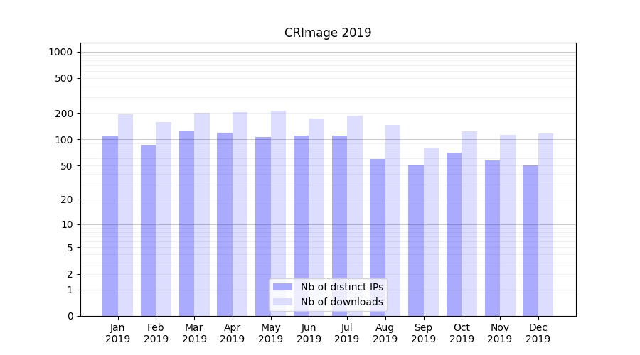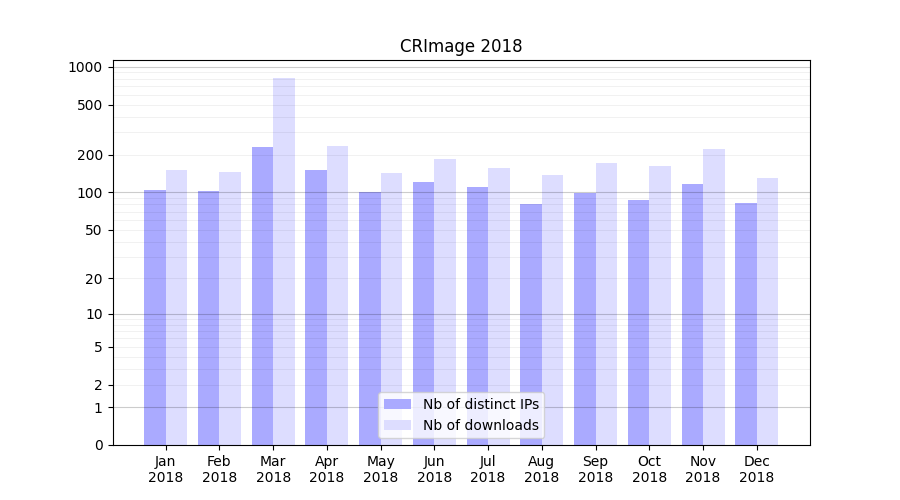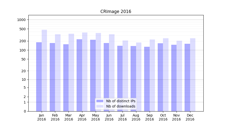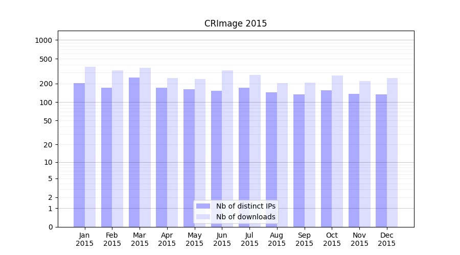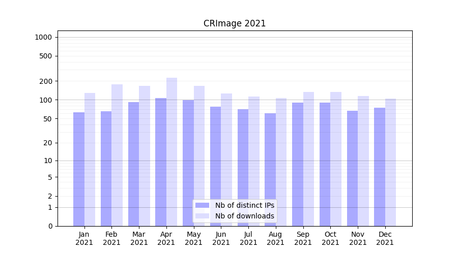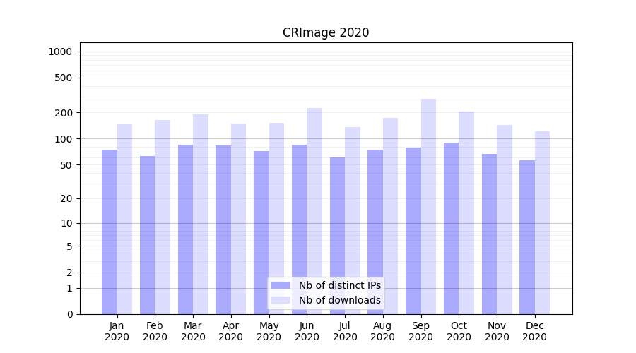 Number of downloads for software package CRImage, year by year, from 2025 back to 2014 (years with no downloads are omitted):