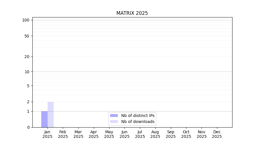Number of downloads for software package MATRIX, year by year, from 2025 back to 2014 (years with no downloads are omitted):