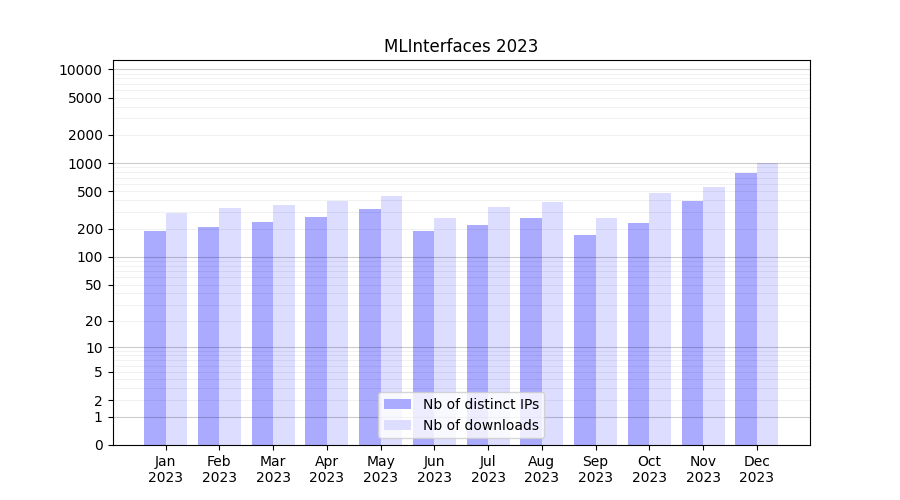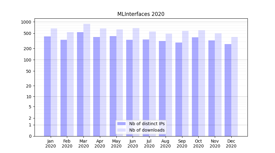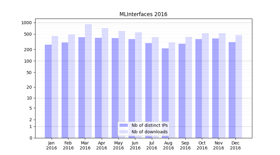 | Month | Nb of distinct IPs | Nb of downloads |