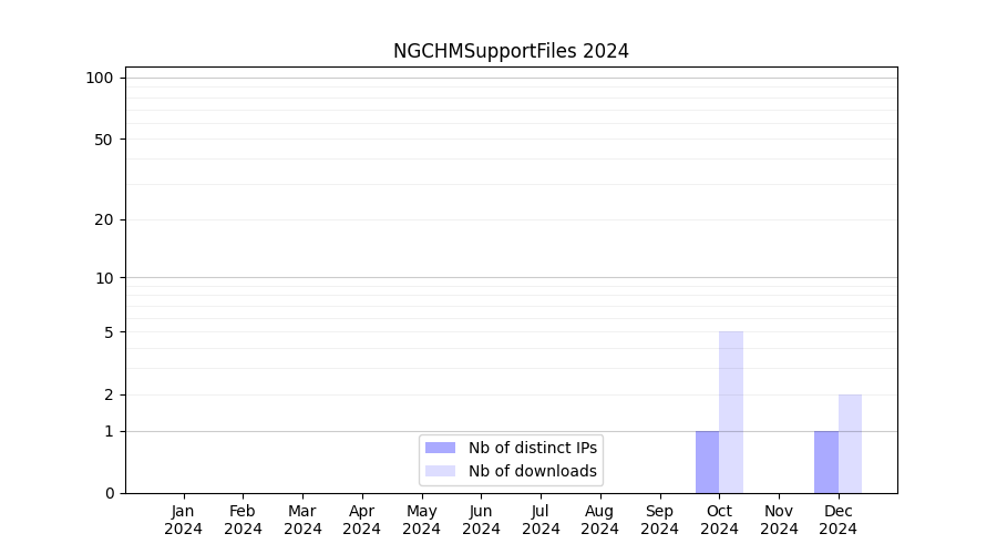 Number of downloads for software package NGCHMSupportFiles, year by year, from 2025 back to 2014 (years with no downloads are omitted):