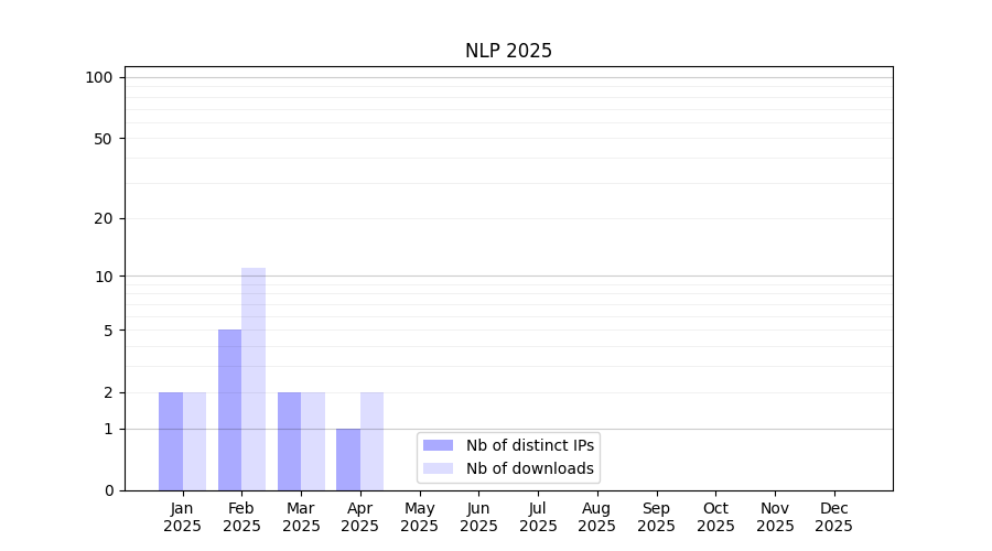 Number of downloads for software package NLP, year by year, from 2025 back to 2014 (years with no downloads are omitted):