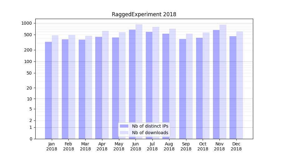 | Month | Nb of distinct IPs | Nb of downloads |