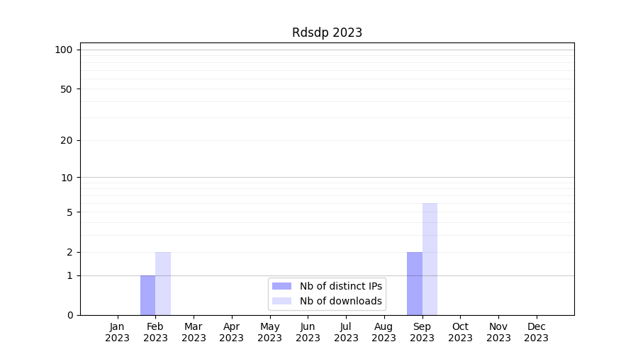Number of downloads for software package Rdsdp, year by year, from 2025 back to 2014 (years with no downloads are omitted):