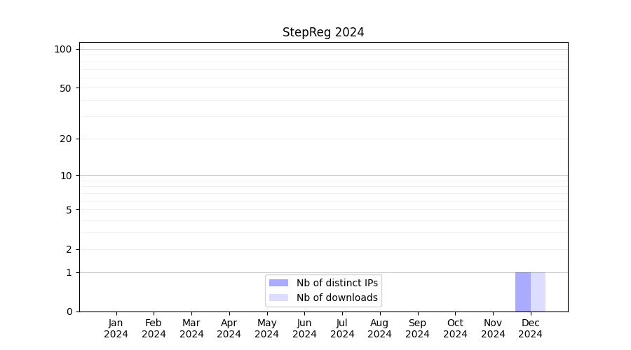Number of downloads for software package StepReg, year by year, from 2025 back to 2014 (years with no downloads are omitted):