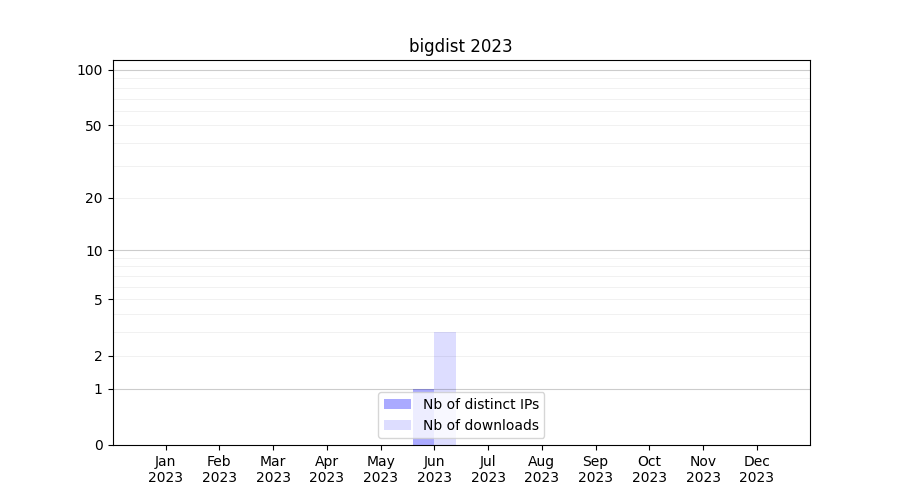 Number of downloads for software package bigdist, year by year, from 2025 back to 2014 (years with no downloads are omitted):