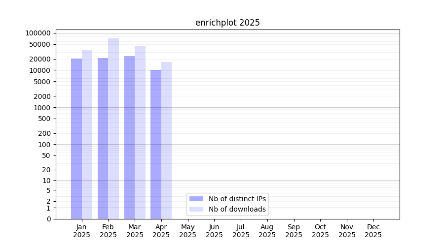 Number of downloads for software package enrichplot, year by year, from 2025 back to 2014 (years with no downloads are omitted):