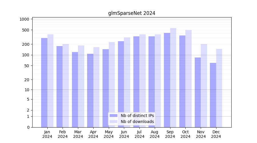 Download stats for software package glmSparseNet