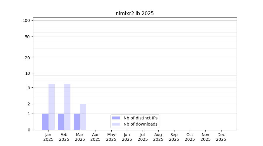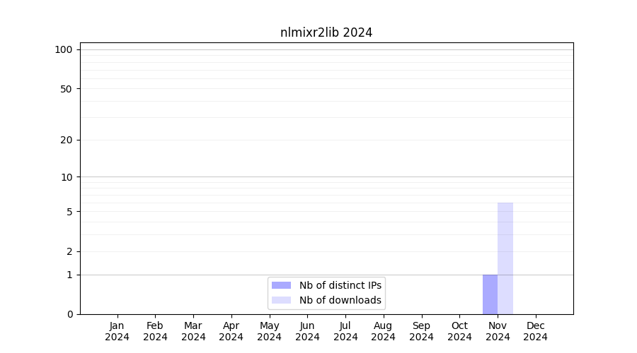 Number of downloads for software package nlmixr2lib, year by year, from 2025 back to 2014 (years with no downloads are omitted):
