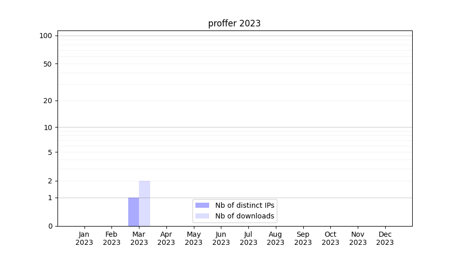 Number of downloads for software package proffer, year by year, from 2025 back to 2014 (years with no downloads are omitted):