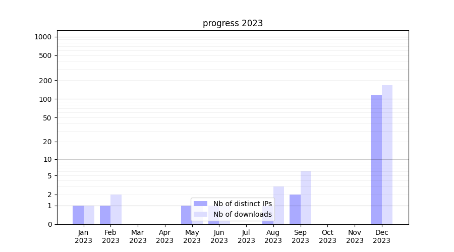 | Month | Nb of distinct IPs | Nb of downloads |