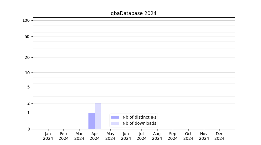 Number of downloads for software package qbaDatabase, year by year, from 2025 back to 2014 (years with no downloads are omitted):
