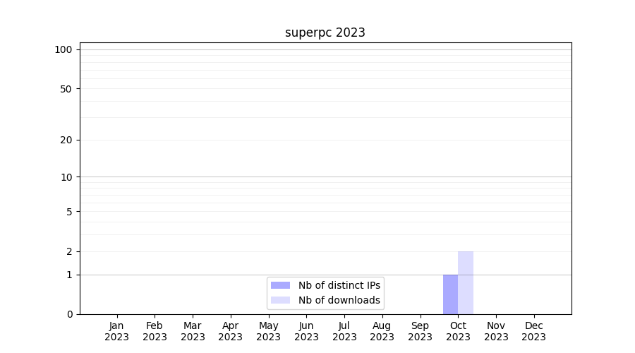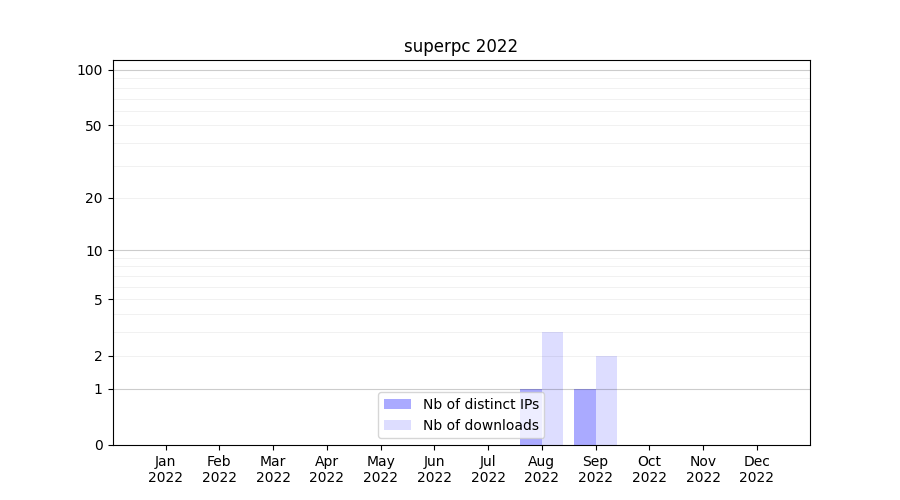 Number of downloads for software package superpc, year by year, from 2025 back to 2014 (years with no downloads are omitted):