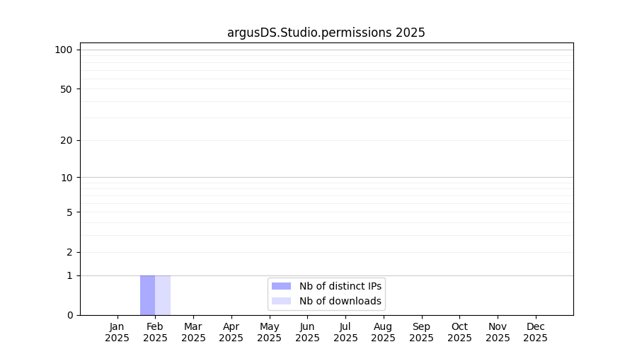 Number of downloads for experiment package argusDS.Studio.permissions, year by year, from 2025 back to 2014 (years with no downloads are omitted):