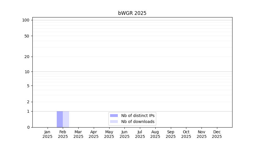 Number of downloads for experiment package bWGR, year by year, from 2025 back to 2014 (years with no downloads are omitted):