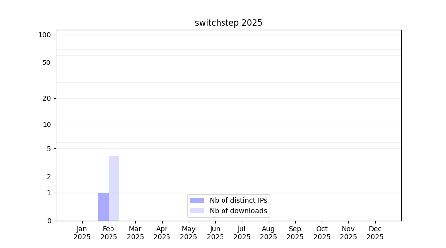 Number of downloads for experiment package switchstep, year by year, from 2025 back to 2014 (years with no downloads are omitted):