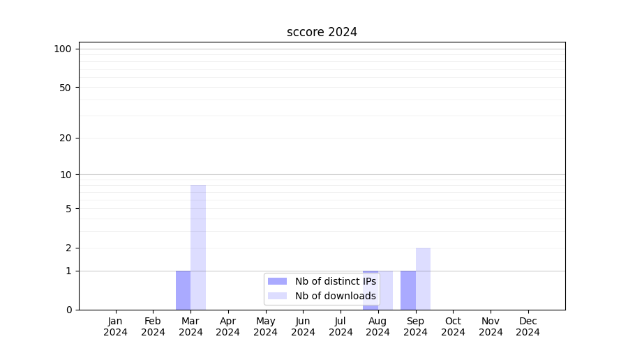 Number of downloads for workflow package sccore, year by year, from 2025 back to 2015 (years with no downloads are omitted):