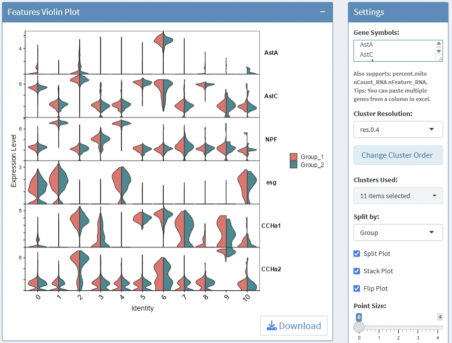A: Yes! Most visualizations can be downloaded as PDF files. Analysis results (DEGs, feature summaries, etc.) can be downloaded as CSV files. Cluster name mappings can also be exported.