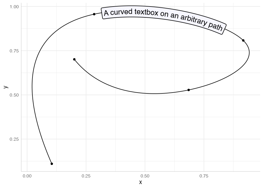 If we want our text in a box, even when the text is curved, we can use geom_labelpath instead: