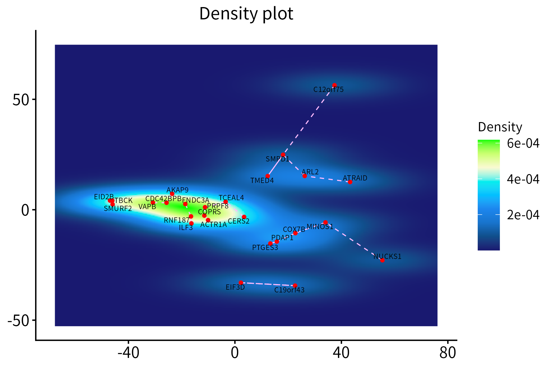 The input data frame must store the point labels in its first column and their numeric values in its second column. A third column (categorical) representing the group where each point is assigned can also be provided.