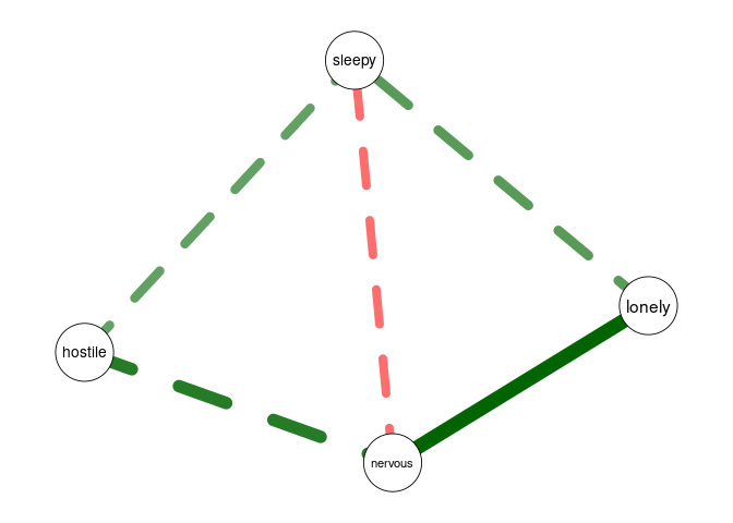 data <- na.omit(psychTools::msq[, c('hostile', 'lonely', 'nervous', 'sleepy', 'depressed')])